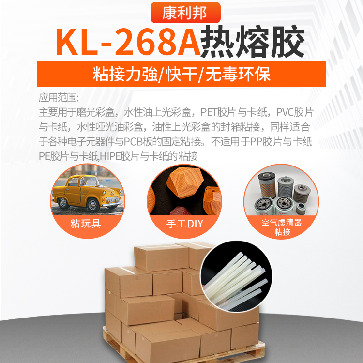 KL-268A熱熔膠具有粘接力強、快干、無毒環(huán)保、應(yīng)用廣的特點